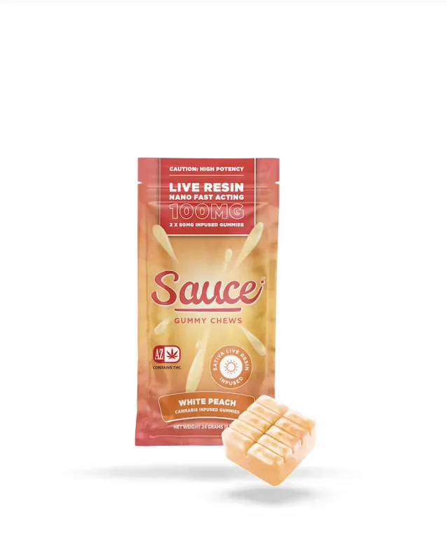 Sauce Essentials Gummy Chews White Peach – 100MG Live Resin Infused Edibles (Sativa)